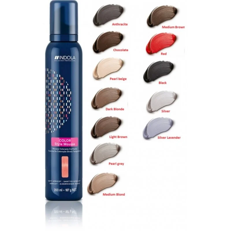 Indola Profession Color Mousse is zowel een styling kleuring als een haar verzorging product. Deze mousse maakt het haar glanzend en zorgt voor gelijkmatige kleurresultaten dankzij de snelle opname van verzorgende bestanddelen en pigmenten. Zowel ideaal voor een nieuwe look als voor een opfrisbeurt van gekleurd haar. De Indola Color Mousse hoeft niet uitgespoeld te worden en is daardoor erg makkelijk in gebruik. De mousse verdwijnt na één wasbeurt.